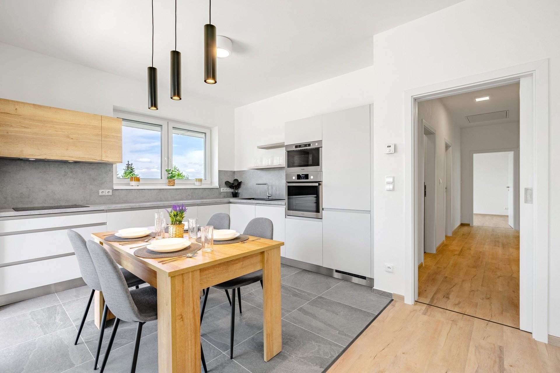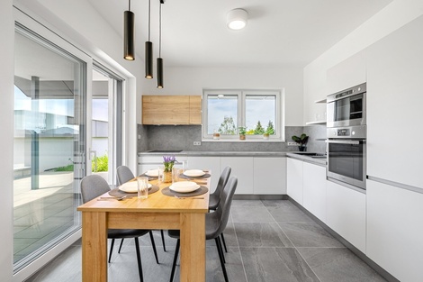 Hledáte novostavbu v blízkosti Zlína, chcete si zvolit materiály, které se líbí jen vám, a zároveň chcete bydlet během pár měsíců? Máme pro vás řešení! Jedná se o novostavbu rodinného domu v Rackové, kde se právě dokončuje stavba. Rodinný dům může být dispozičně řešen jako 4+kk s dvougaráží, 5+kk s jednou garáží nebo 6+kk bez garáže, ale i tak vám zůstane parkovací stání. Exteriér domu bude dokončen podle materiálového standardu a interiér čeká pouze na vás, můžete si ho uzpůsobit přesně podle svých představ. Můžete si zvolit typ a barvu podlah, barvu dveří a zárubní, barvu obkladů v koupelně, sanitární techniku, vymalování a mnoho dalšího. Výběr materiálů je v rámci standardu bez navýšení inzerované ceny, po dohodě si však můžete vybrat i cokoliv podle svých preferencí. Dům se dispozičně skládá z prostorného obývacího pokoje propojeného s kuchyní. Elegantní koupelna je vybavena vanou, sprchovým koutem i WC, dále zde najdeme 3 až 5 ložnic, samostatné WC a technickou místnost. A pokud nebudete chtít 1 až 2 pokoje, můžete mít prostornou garáž pro dva automobily. Novostavba je postavena ve vysokém materiálovém standardu. Nosné zdivo domu je postaveno z Ytongu tl. 300 mm, zatepleno polystyrenem tl. 150 mm. Použita jsou plastová sedmikomorová okna s trojsklem v barvě antracit/bílá, venkovní žaluzie jsou hliníkové Z-90 se zapuštěnými vodicími lištami v barvě antracit. Vytápění je řešeno pomocí tepelného čerpadla od společnosti FUJITSU WATERSTAGE a vodovodního podlahového vytápění Active Elements. Dále je zde komín pro krbovou vložku nebo kamna, dveře od společnosti Sapeli, koupelna od Ptáčka, rigidní vinylová podlaha s pevným jádrem od společnosti V-podlahy a mnoho dalšího. Při osobní prohlídce vám ukážeme dokončený vzorový dům pro lepší představu. Další benefity tohoto domu zahrnují nádherný výhled a prostorný pozemek o rozloze 985 m2, pohodlné parkování v garáži pro dvě auta a místo pro další 2-3 auta před garáží. Případně si můžete vybrat dům s jinou polohou a dispozicí. Pokud hledáte moderní a prostorné bydlení v klidné lokalitě s výbornou dostupností do centra, tento dům je pro vás tou správnou volbou. Rádi vám také pomůžeme s vyřízením výhodné hypotéky. Zveme vás tímto na osobní prohlídku nemovitosti. Eduard Diakov & Roman Krist. Dáme Domov