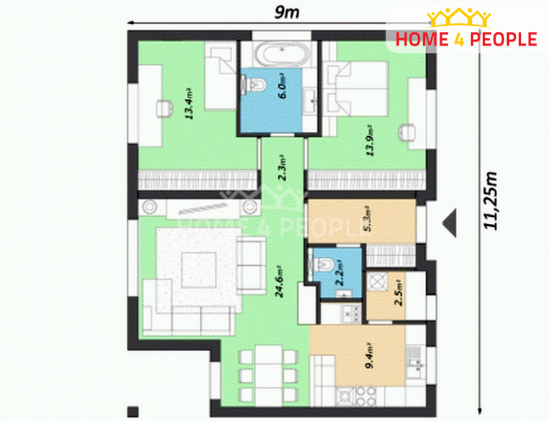 Zprostředkujeme Vám výstavbu domu na klíč typ Fresh 4+kk, 100 m2 na pozemku (č. 16) o velikosti 997 m2 v Bořenovicích okr. Kroměříž. Bungalov Fresh je typ rodinného domu vhodný do rovinatého, ale i mírně svažitého terénu. Součásti uvedené ceny, která již zahrnuje DPH je dům na klíč, inženýrské sítě mimo plynu, příjezdová i obslužná komunikace, veřejné osvětlení, chodník, centrální čistička odpadních vod, pozemek a veškeré projektové práce a stavební povolení. Přípojná místa jsou vyvedena na pozemku. Pozemek (číslo 16) je mírně svažitý na klidném místě obce. Šíře pozemku je 20,5 m. Dle územního plánu je pozemek veden a schválen pro rodinné bydlení a projekt byl schválen zastupitelstvem obce. Zastavěná plocha domu je 100 m2 s užitnou plochou 80 m2. Jedná se o zděnou stavbu a nabízí se ve variantě na klíč. Topení je řešeno nízkonákladovým teplovodním podlahovým topením, tepelné čerpadlo se zásobníkem na teplou vodu 180l. Možnost změnit na jiný typ vytápění s doplatkem dle výběru. Uvedená cena domu obsahuje základovou desku, DPH a stavba bude provedena na klíč a předána po kolaudaci k okamžitému užívání. (Součástí ceny není kuchyňská linka a světla - dokážeme za zvýhodněných podmínek zajistit přes naše dodavatele). Možnost změny stavebního materiálu na dřevostavbu s doplatkem nebo přistavit garáž přímo spojenou s domem. Délka výstavby od vydání stavebního povolení 12-13 měsíců u dřevostavby a 11-12 měsíců. Na lokalitě právě se realizuje již 6 stavba. Obec Bořenovice se nachází v okrese Kroměříž ve Zlínském kraji, zhruba 3,5 km od Holešova, 28 km od Kroměříže a 10 km k dálnici D55. Žije zde cca 210 obyvatel. Základní školu děti navštěvují v sousedním městě Holešov. V obci plné pokrytí signálu LTE, dostupný internet i satelitní vysílání. V obci je obchod se smíšeným zbožím, zajištěna autobusová doprava do Holešova. Omezený počet pozemků pro prodej v tomto roce. Doporučuji prohlídku a to jak samotného pozemku, tak našich rozestavěných domů v okolí. ZTV Bořenovice najdete na webu H4P v sekci developerské projekty. Ev. číslo: 29323. Energetický štítek: A (35 kWh/m2/rok).