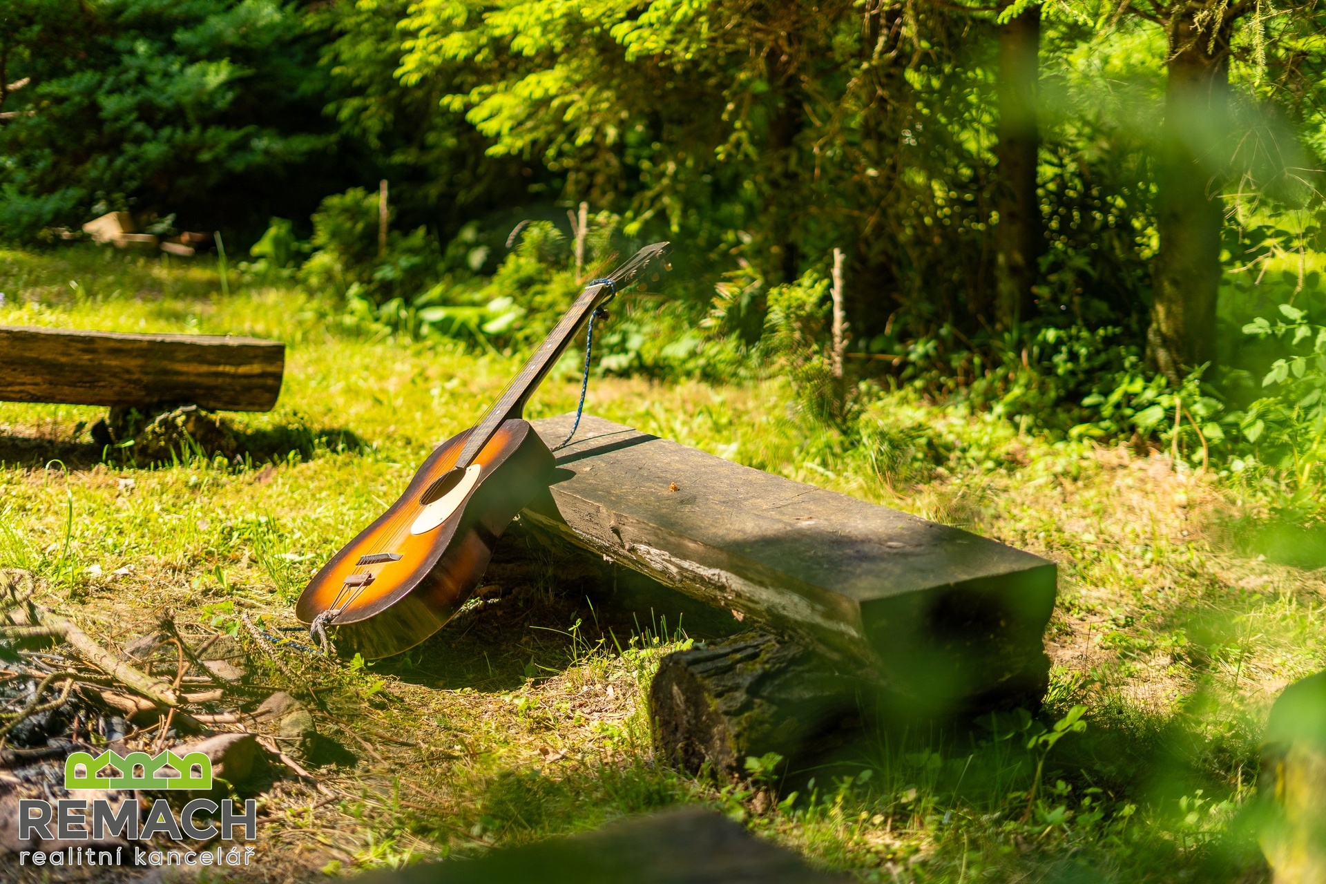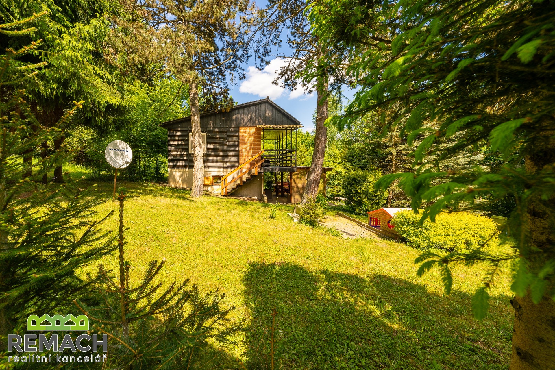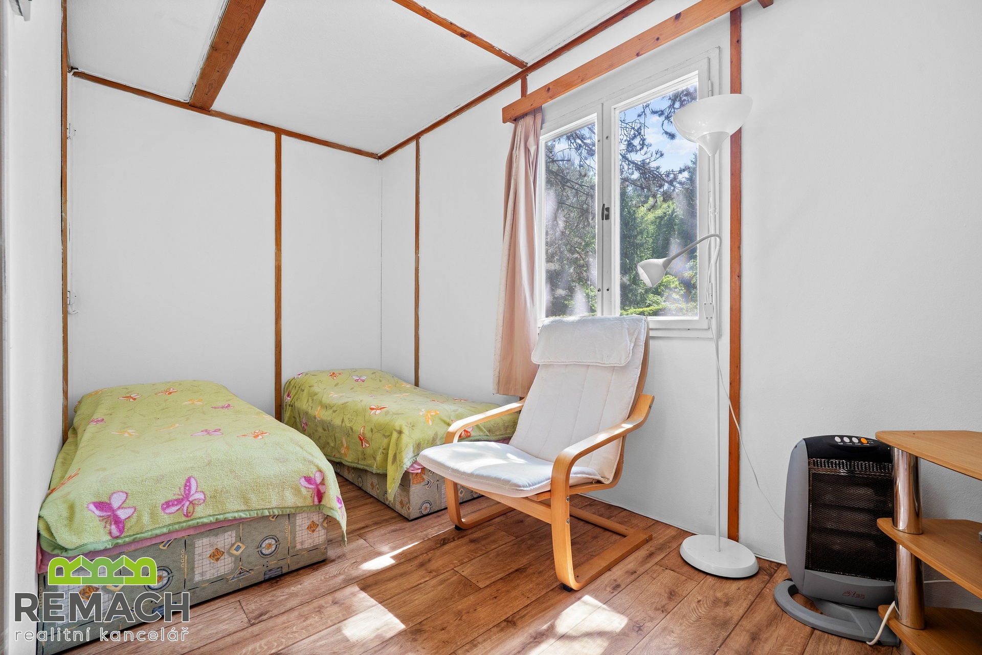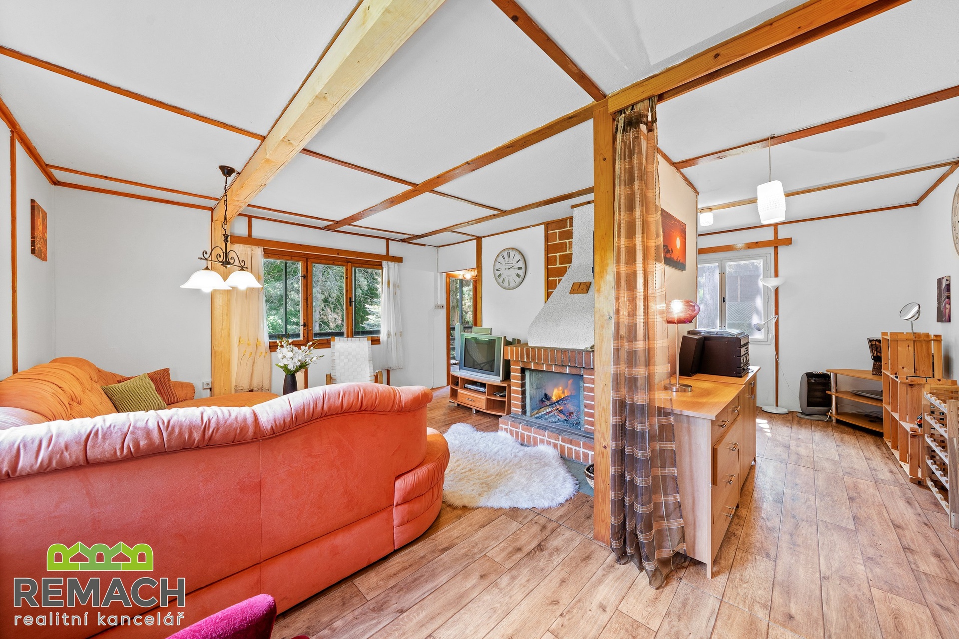 Útulná chata obklopená lesem v srdci přírody západní část Chřibů. Nejznámější dominantou této oblasti je hrad Buchlov, kam to máte odsud dva a půl kilometru. Místo pro odpočinek od každodenního shonu, to je tato kouzelná chata o dvou podlažích, s balkonem i terasou a celkovou plochou pozemku o rozloze 400 m2. Příjezd autem i parkování pro ně je zajištěno na vlastním pozemku. Uvnitř najdete pohodlné a prakticky řešené prostory, venku pak oceníte zmíněnou terasu vhodnou pro grilování a posezení s rodinou či přáteli. Z balkonu se otevírá krásný výhled do okolní přírody, která umocňuje klidnou atmosféru tohoto místa. V dolní části je koupelna se sprchovým koutem, kuchyňská linka, spižírna a první obývací pokoj a to o rozloze 20 m2. V horní části je druhý obývací pokoj o rozloze 21 m2 a pokoj, 12 m2 plus zádveří. Chata je napojena na elektřinu, voda je zajištěna ze studny, odpad řešen trativodem. Tato chata představuje skvělé útočiště, kde můžete načerpat novou energii, a to v každém ročním období.