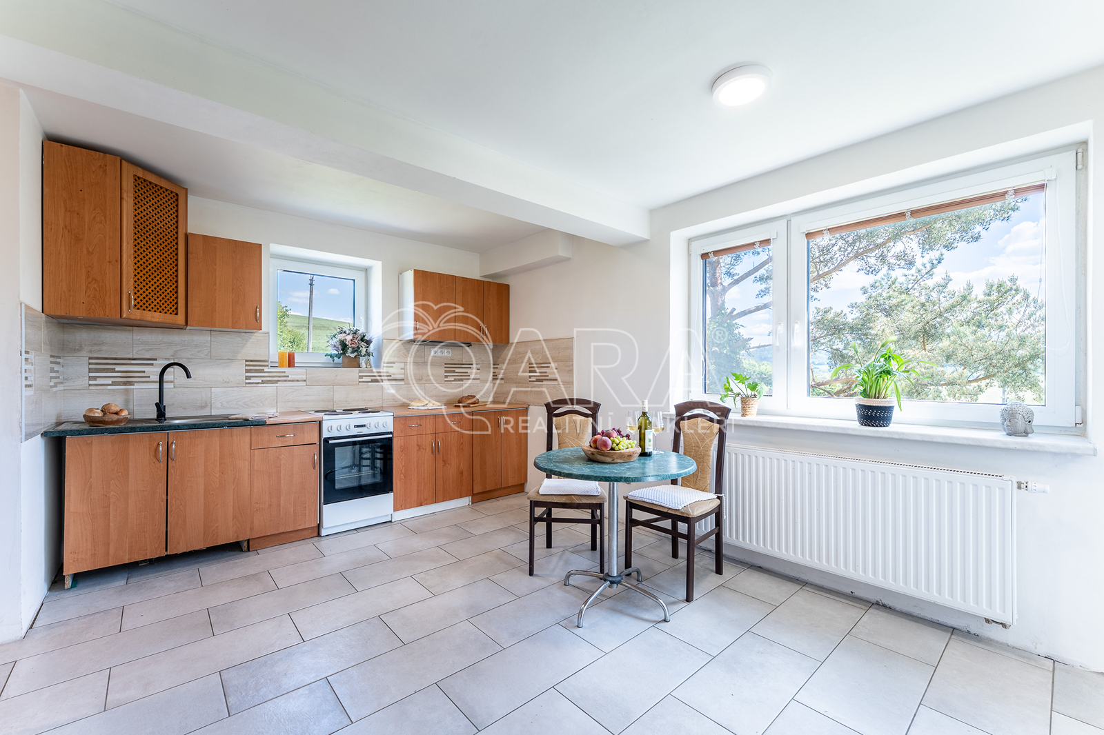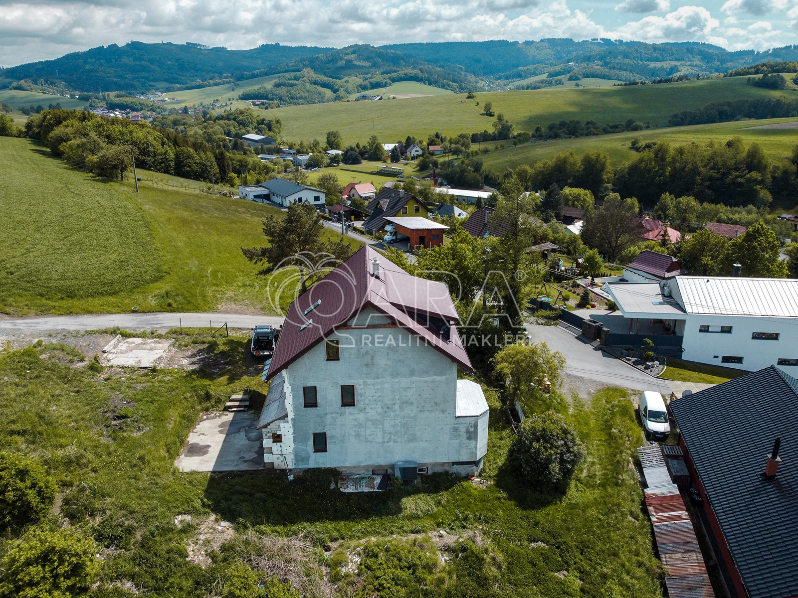 Toužíte po klidu v nádherné krajině? Nabízím Vám rodinný dům nebo místo pro podnikání přímo v Beskydech, v krásné vesnici Kateřinice. Klid vám zaručí poloha domu na konci vesnice ve slepé ulici s výhledem do údolí. Dům je patrový, samostatně stojící, o ploše 190 m2 s pozemkem přes 1000 m2. U domu je základová deska pro garáž. Rodinný dům je částečně podsklepený, rekonstrukce proběhla před 9 lety a je připraven k dokončení. V přízemí o rozloze 114 m2 najdete tři vstupy do domu, obývací pokoj (28,80 m2), pokoj (13,94 m2), kuchyň (11,04 m2), koupelnu s toaletou (3,45 m2) a technickou místnost (1,92 m2). V patře se nachází tři pokoje (13,94m2, 13,25 m2 a 9,30 m2), šatna, koupelna (5,20 m2), toaleta (1,82 m2) a kuchyň (23,51 m2) se vstupem na západní balkon. Podkroví (50m2) je připraveno včetně rozvodů a odpadů pro výstavbu dalších dvou pokojů s velkým střešním balkonem a nádherným výhledem na pravou Beskydskou krajinu. Díky tepelnému čerpadlu se nemusíte bát vysokých nákladů. Dům je napojený na veřejný vodovod a eletkřinu. Obec Kateřinice leží severozápadně od Vsetína v táhlém údolí potoka Kateřinky. Nad západním okrajem obce leží přírodní rezervace Dubcová, kde rostou ohrožené druhy vlhkomilných rostlin. Vesnici protíná několik cyklostezek a turistických tras. V zimě jsou v okolí obce udržovány stopy pro běžkaře a do 20 minut můžete lyžovat na Trojáku. Vaše děti mohou chodit do mateřské a základní školy přímo v Kateřinicích. A když budete mít chuť vyrazit do města, máte to 13 km do Vsetína, za 20 minut jste ve Valašském Meziříčí a do tři čtvrtě hodiny jste ve Zlíně, ale žije to i v sousední Ratiboři. Těším se s Vámi na prohlídku a přeji Vám krásné dny.