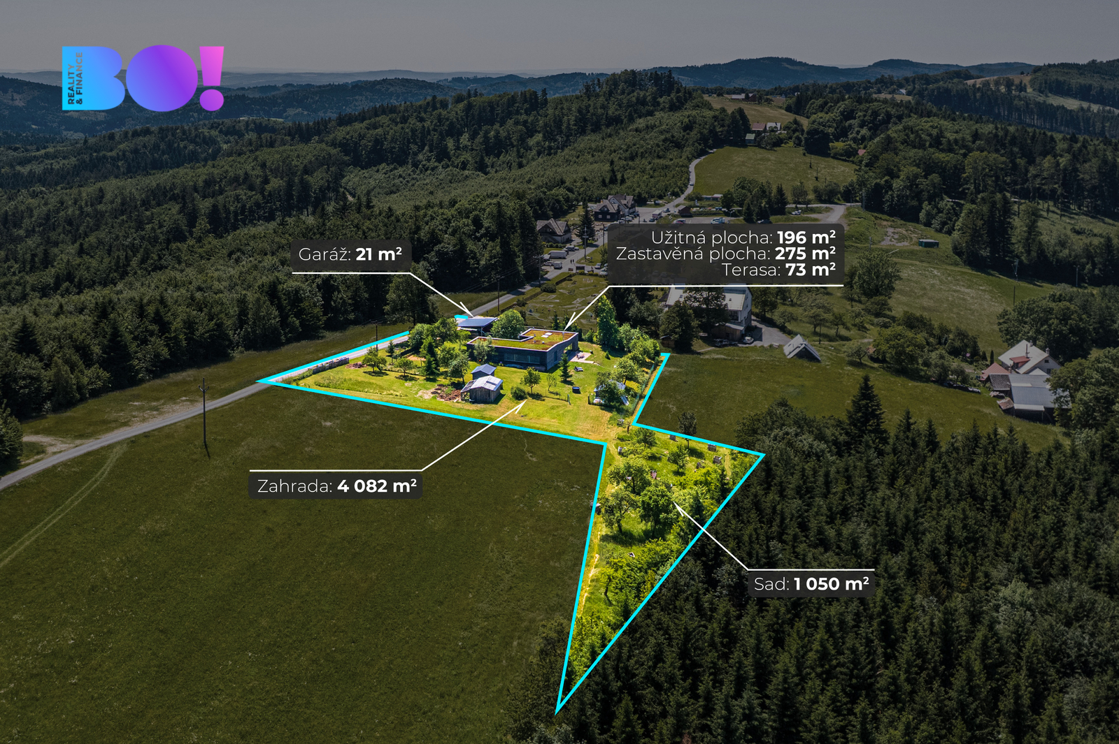 Toužíte po moderním domově uprostřed přírody, s naprostým soukromím a výhledy, které nikdy neomrzí? Právě pro vás je určena tato výjimečná nemovitost nacházející se v katastru obce Rajnochovice - na Trojáku, jednom z nejkrásnějších míst Hostýnských vrchů, nedaleko rozhledny Maruška a lyžařského areálu Troják. Rodinný dům o dispozici 6+kk je situován na rozsáhlém pozemku 6 428 m2 s udržovanou zahradou, samostatnou garáží, dvěma zahradními domky a letní kuchyní. Samotná zastavěná plocha domu činí 275 m2, navíc je k dispozici prostorná terasa o výměře 72 m2 orientovaná na západ. Lokalita a dostupnost: Troják je místem, kde se setkávají tři okresy - Vsetín, Zlín a Kroměříž. Lokalita je známá nejen krásnou přírodou, ale i výbornou dostupností. Autem jste za: - 15 minut v Bystřici pod Hostýnem, - 25 minut ve Vsetíně, - 35 minut ve Zlíně, Všechna tato města nabízejí bohatou kompletní občanskou vybavenost. Nejbližší školka, škola, obchody, lékař a sportoviště se nacházejí v obci Hošťálková, vzdálené 5 km po asfaltové komunikaci. Přes Troják pravidelně jezdí autobusy, které zajišťují spojení ve všech směrech (Bystřice pod Hostýnem, Vsetím, Zlín), bez nutnosti vlastního vozu. Konstrukce a technologie: Tento dům vznikl jako pečlivě promyšlený projekt s důrazem na kvalitu, funkčnost a ekologii: Nosné zdivo: - Pálené bloky typu Porotherm, zateplení minerální vatou 15 cm, - monolitické stropy z betonu B25, základy z prostého betonu B20, - provětrávaná fasáda s dřevěným obkladem z severského modřínu, - zelená (vegetační) střecha, která skvěle izoluje a zapadá do krajiny, - hliníková okna s trojsklem - včetně velkoformátových francouzských oken v obytné části (hlavní portál s výhledem do krajiny má 8m na délku), - teplovodní podlahové vytápění, elektrokotel, - kvalitní kanadská krbová kamna, - příprava pro kotel na tuhá paliva, - vlastní studna, - domácí čistička odpadních vod. Dispozice: Dům nabízí velmi komfortní dispozici 6+kk - se zaměřením na otevřenost a propojení s exteriérem: - obývací pokoj s kuchyňským a jídelním koutem, téměř 70 m2, - 4 ložnice, - pracovna s vlastním vstupem, - 2 koupelny s WC, - 2 technické místnosti, - velká terasa navazující na obytnou část. Každý detail interiéru je navržen s důrazem na světlo, jednoduchost a funkčnost. Dům je zároveň snadno udržovatelný, úsporný a připravený na celoroční užívání - jak pro trvalé bydlení, tak jako luxusní víkendová rekreace. Shrnutí: - výjimečná poloha v přírodě - elektrické žaluzie - centrální vysavač - přístup po asfaltové komunikaci udržované i v zimním období - vlastní studna (hloubka 76m) + čistička = soběstačnost - velký pozemek, garáž, 2 zahradní domky, letní kuchyň, přístřešek pro tři auta - krásné výhledy a naprosté soukromí - vhodné i jako investiční nemovitost (rekreace, pronájem) Podobné nemovitosti se na trhu objevují jen zřídka. Pokud Vás tedy zaujala, zavolejte mi a dohodneme termín prohlídky - tuto nemovitost je třeba vidět a zažít osobně na místě. Těšíme se na vás.