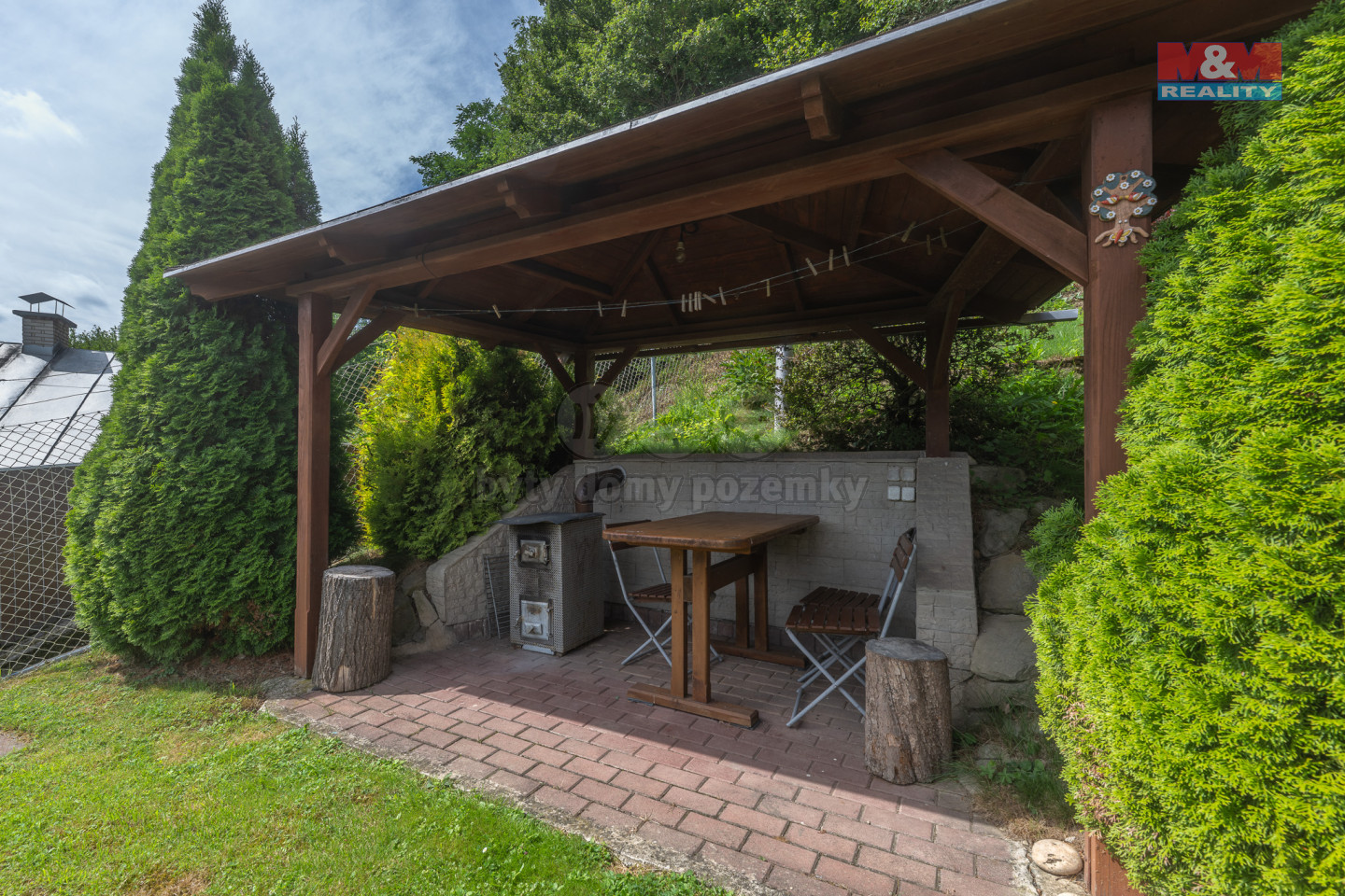 Chalupa vhodná pro celoroční bydlení ve velmi vyhledávané rekreační oblasti se skvělou dostupností do Zlína a Vsetína. Udržovaný zděný objekt o dispozicích 3+1, kde dominantou jsou kachlové kamna. Chalupa se 2 parkovacími místy, pergolou na okrasné zahradě, ovocným sadem, úložnými prostory, sklepem a velmi zajímavým pozemkem o celkové výměře 1604 m2. Celá nemovitost je oplocena hliníkovým plotem, má kopanou i vrtanou studnu, odpad je sveden do jímky. Dalšími stavbami jsou bývalé včelíny a zůstává částečně vybavená dílna, vybavení chalupy i zahradní nářadí. Doporučujeme prohlídku. Prohlídkový den proběhne 5. 8. 2025, přesný termín si rezervujte u makléře.