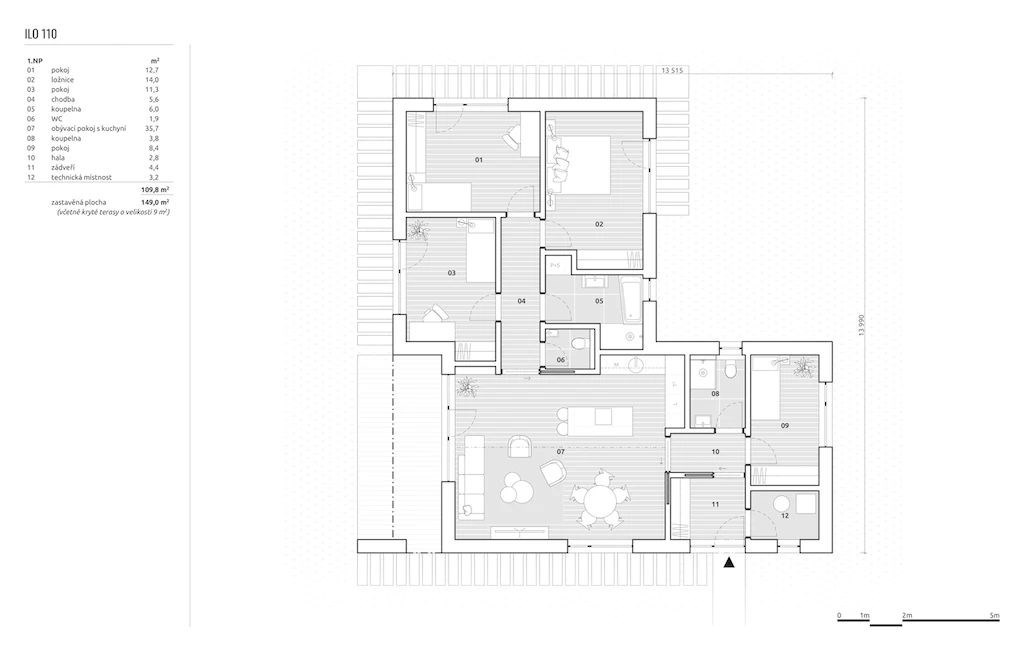 Nabízíme výstavbu moderního přízemního rodinného domu 5+kk (110 m2) na klíč, včetně pozemku (1011 m2) ve městě Hulín. Součástí nabídky a uvedené ceny je pozemek a stavba domu s kompletním dokončením interiéru, včetně sanitární výbavy koupelen a WC, vnitřních dveří, podlahových krytin, obkladů a dlažeb. Kuchyňská linka není součástí dodávky. Technické parametry: ✅ Úsporná dřevostavba s kvalitním zateplením pro nízké náklady na bydlení ✅ Teplovodní podlahové vytápění s tepelným čerpadlem a TUV nádrží ✅ Napojení na všechny inženýrské sítě ✅ Retenční nádrž na dešťovou vodu, zpevněné parkovací stání a terasa ✅ Základní terénní úpravy v ceně Možnost výběru: Odstíny vinylových podlah, koupelnových obkladů a dekorů dveří Dva odstíny venkovní fasády Ideální bydlení s kompletním servisem. Pro více informací nás kontaktujte!