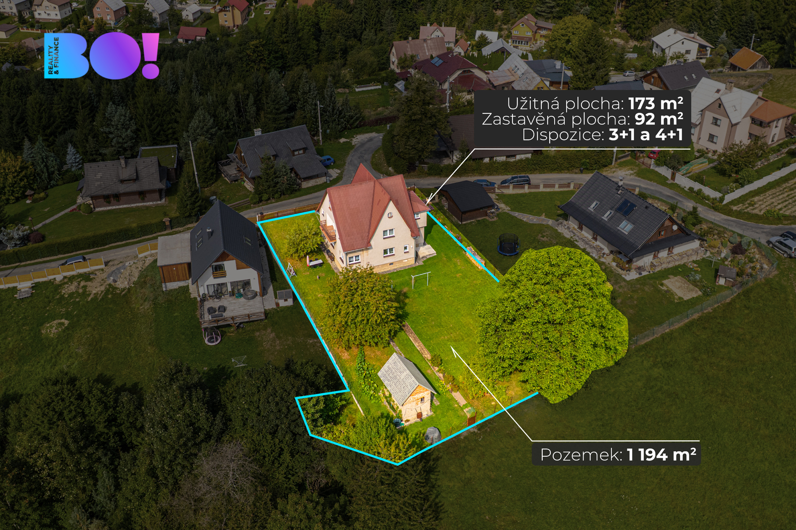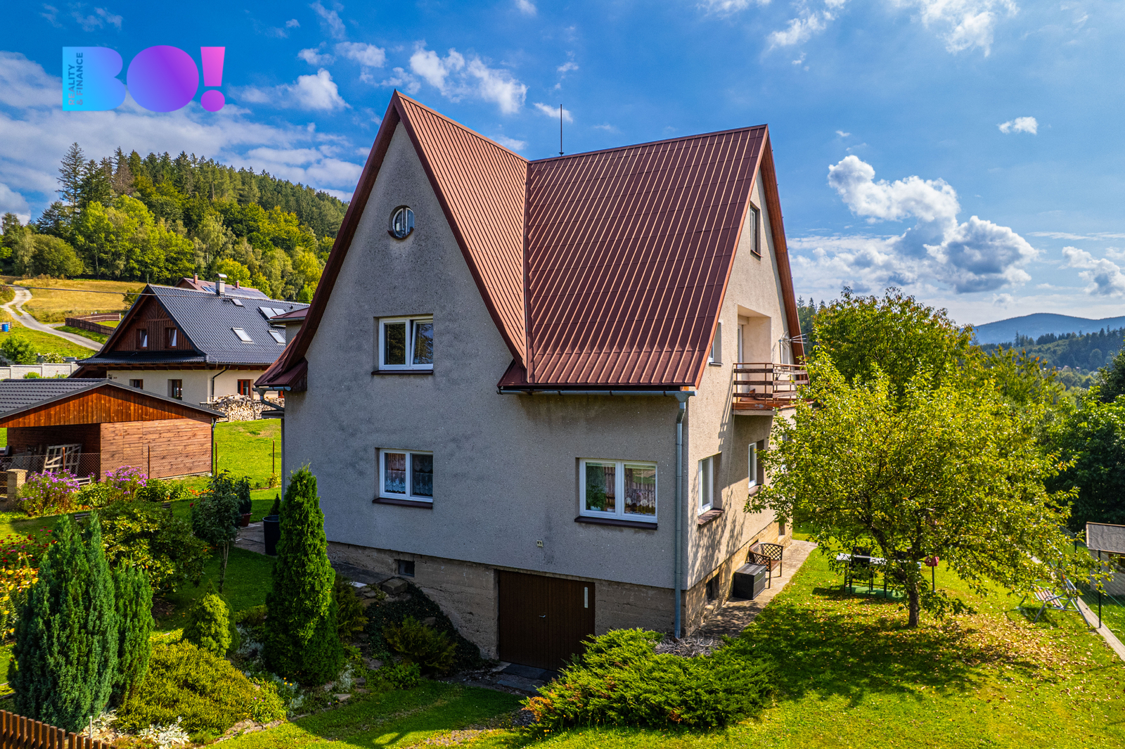 Na klidném místě v srdci Beskyd, v obci Horní Bečva, čeká na své nové majitele prostorný rodinný dům se zahradou. Dům se nachází na polosamotě, obklopený přírodou a lesy, s jen pár sousedy v okolí - ideální místo pro všechny, kdo hledají soukromí a klid, ale zároveň chtějí mít v dosahu potřebnou občanskou vybavenost. V obci najdete vše, co je k pohodlnému životu potřeba - školu, školku, poštu, obchody, služby i sportoviště. Kousek odtud se nachází také přehrada Horní Bečva, která je oblíbeným místem k procházkám, koupání i rybaření. Milovníci hor ocení snadnou dostupnost turistických tras, cyklostezek i lyžařských areálů. Dispozice domu: Přízemí (3+1): vstupní chodba, samostatné WC, koupelna, pokoj (např. jako kancelář či ložnice), zcela nová kuchyně se spižírnou, obývací pokoj s navazujícím dalším pokojem. První patro (4+1): nová koupelna, samostatné WC, chodba s vestavěnými skříněmi, dva pokoje, obývací pokoj s dalším navazujícím pokojem a kuchyň, kterou lze plně zprovoznit (vše je připravené). Další menší pokoj je přístupný přímo z kuchyně. Podkroví: prostorná půda s možností přestavby na obytné podlaží. Dům je tak možné využít i jako dvougenerační, případně s možností vybudovat druhý vchod. Vytápění je řešeno kotlem na tuhá paliva, ohřev vody elektrickým bojlerem, voda je ze studny, kanalizace obecní. Elektřina je nová v celém prvním patře a částečně i v přízemí. Další prostory: Dům je celý podsklepený - najdete zde místnost s kotlem, dvě menší místnosti, prostornou garáž a dílnu. Součástí je také hospodářská budova a rovinatá zahrada o velikosti 1194 m2, ideální pro relax, zahradničení nebo třeba dětské hry. Parametry: zastavěná plocha: 92 m2 užitná plocha: 173 m2 pozemek: 1194 m2 Tento dům je ideální pro rodinu, která hledá velký a variabilní prostor, možnost dvougeneračního bydlení, nebo pro ty, kdo si chtějí přizpůsobit dům podle vlastních představ. Díky své poloze nabízí jedinečnou kombinaci klidu, přírody a výborné dostupnosti občanské vybavenosti i turistických atrakcí. V případě zájmu o prohlídku nás neváhejte kontaktovat. S financováním vám pomůžeme.