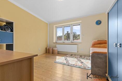Svou polohou vhodný i pro sídlo firmy, možnost parkování. Nabízíme k prodeji dům v řadové zástavbě, dům koncový. Jedná se o zděný dům - dvě bytové jednotky. Celo podsklepený. Dům prošel před 25 lety kompletní rekonstrukcí. Nová střecha , trámy, latě. Střešní taška Bramac. Nové okna, zateplení - 16 cm polystyren. Topení - plyn, alternativou jsou i krbová kamna. V domě nová elektroinstalace, podlahy - dlažba, dřevěné parkety. Nové rozvody vody v plastu. V INP - bytová jednotka 3+1. /koupelna,wc/. Tyto prostory jsou vyklizeny. Historie domu ukazuje na možnosti využití ke komerčním účelům. V IINP bytová jednotka 4+1 /koupelna se sprchovým koutem a vanou/. V půdní vestavbě - pokoj. K domu náleží zázemí - dílna, technická místnost, prostory pro uložení sportovního vybavení. U domu menší zahrada. Parkování u domu. PENB bude dodán.
