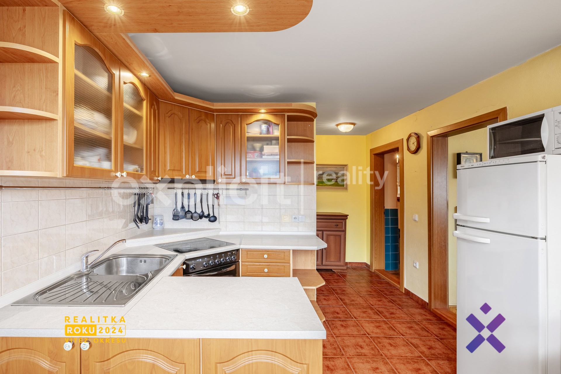 Představte si domov, kde máte dostatek prostoru pro celou rodinu, zahradu, na které se dá skutečně odpočívat, a místo, kde vás neruší hluk města. Přesně takovou nemovitost vám nabízím ve Fryštáku, v části Horní Ves, v tiché lokalitě obklopené zelení, kde se dá žít v klidu a pohodě. Dům stojí na pozemku o rozloze 946 m2 a nabízí 192 m2 užitné plochy. Dispozice je promyšlená a praktická, takže dům skvěle poslouží jak pro rodinné, tak i vícegenerační bydlení. Na zahradě o velikosti 690 m2 najdete venkovní krb, dřevěnou kůlnu i studnu. Díky napojení na obecní vodovod lze mezi oběma zdroji vody jednoduše přepínat podle potřeby. V přízemí se nachází předsíň, prostorná chodba, kuchyň s jídelním koutem a vstupem na velkou terasu, obývací pokoj, ložnice a dvě koupelny. Jedna se sprchovým koutem a toaletou, druhá s vanou. Samostatné WC pak přidává ještě více komfortu. V patře jsou další dva pokoje a kuchyň. Prostor pro rodinu s dospělými dětmi, hosty nebo pro vybudování samostatné bytové jednotky. Jeden z pokojů má balkon, z chodby je vstup na zastřešenou terasu s výhledem do zahrady. Velkým plusem domu je variabilní vytápění. K dispozici je plynový kotel i moderní kotel na dřevoplyn, napojený na tři akumulační zásobníky, které uchovávají teplo a postupně ho uvolňují do systému. Díky tomu stačí kotel roztopit jen jednou za několik dní, a dům zůstává příjemně vyhřátý. Celý systém dodala a instalovala firma Vestop. Na pozemku je navíc připravená zásoba paliva na celou topnou sezónu. Součástí nemovitosti jsou dvě prostorné podsklepené garáže s úložným prostorem pro nářadí a zahradní vybavení. Na garáže navazuje terasa s posezením, ideální místo pro letní grilování nebo klidné večery s rodinou. Dům se nachází v klidné části Fryštáku, která nabízí dostatek soukromí a příjemnou atmosféru. Město má kompletní občanskou vybavenost - školu, školku, obchody, poštu i restaurace. Do Zlína se autem dostanete během několika minut. Tahle lokalita nabízí kombinaci klidného bydlení a skvělé dostupnosti. Pokud vás tento dům zaujal, ozvěte se mi. Rád vás jím osobně provedu. Tomáš Batík Explicit Reality