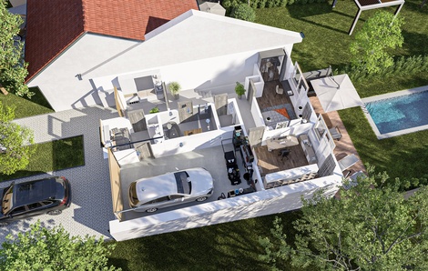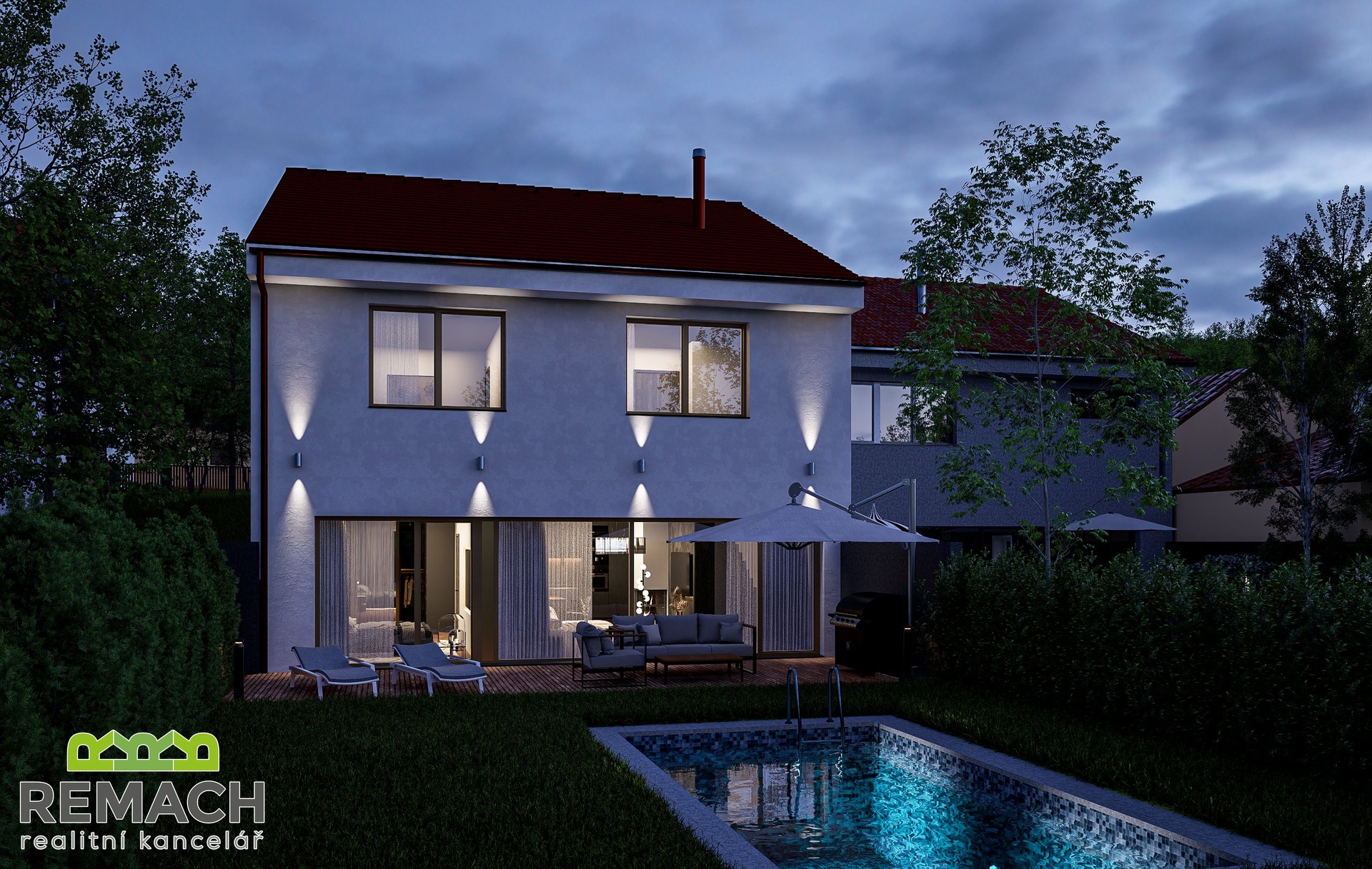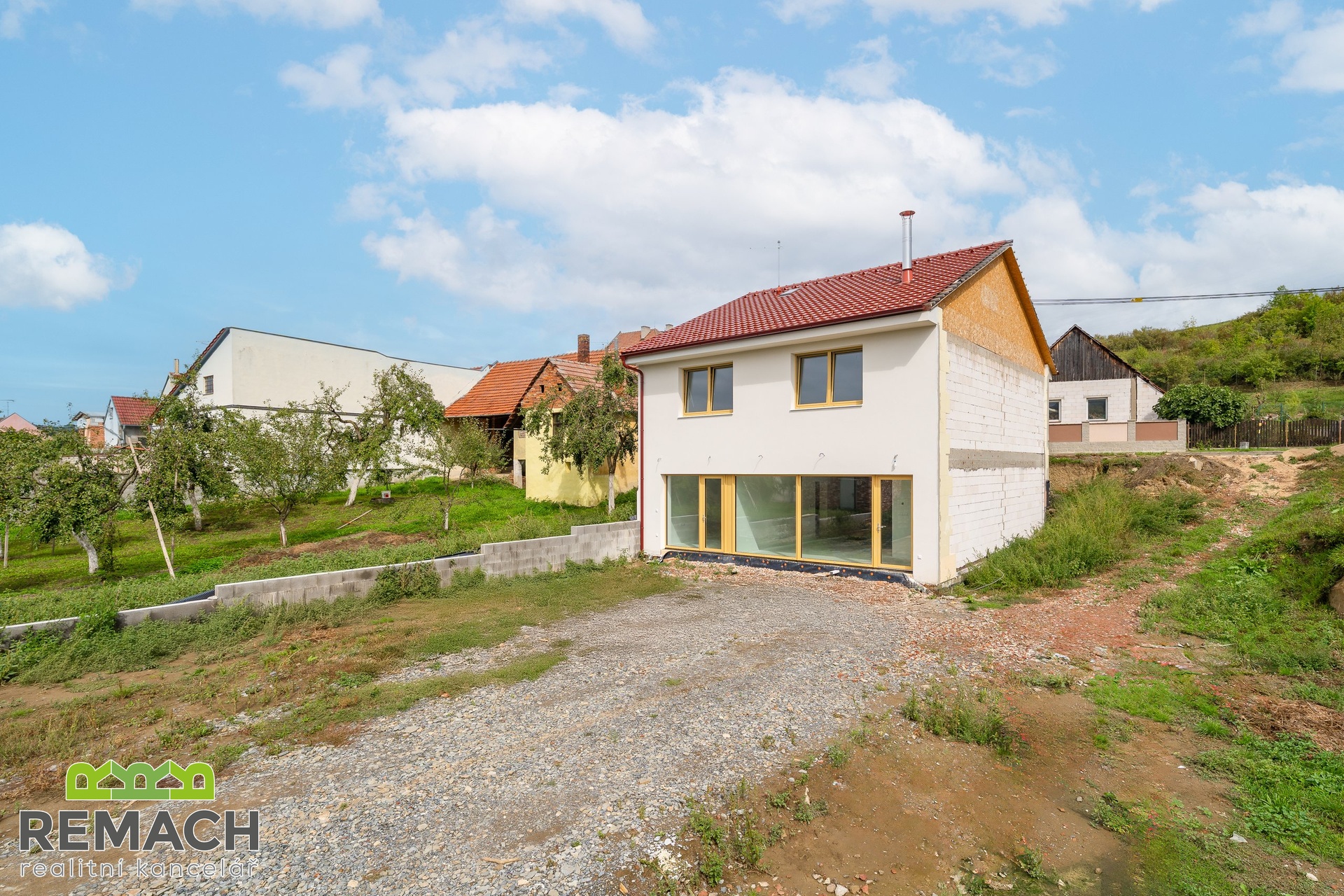 Fotovoltaika, bateriové úložiště, rozvod rekuperace, kamerový systém, klimatizace, krbová vložka, akustické podhledy, retenční nádoba, nabíjení pro elektromobily. Zde vám nic z moderních technologií nechybí. Prostorný dům o dispozici 4+kk je umístěn na pozemku o velikosti 526 m2 a je koncipován tak, aby poskytoval dostatek prostoru pro celou rodinu. Cihlová konstrukce v kombinaci s energetickou náročností třídy A znamená nejen kvalitní izolaci, ale i úsporu na provozních nákladech. Teplo domova si zajistíte krbovou vložkou s výkonem cca 8 kW nebo elektrickým podlahovým topením s regulací BMR s využitím fotovoltaických panelů o výkonu 11,3 kWp a bateriového úložiště s kapacitou 11,3 kWh. K vytápění a chlazení dále poslouží klimatizace, která se nachází ve všech pokojích orientovaných na jih, tedy: obývací pokoj, ložnice a dva dětské pokoje. Přes telefon si nejen zatopíte či ochladíte domácnost, ale připojíte se i na kamerový systém a zkontrolujete, zda je vše v pořádku. Prosvětlený interiér a moderní dispozice Dům je navržen s důrazem na maximální využití prostoru a propojení interiéru s exteriérem. Světlé a prostorné místnosti nabízejí příjemnou atmosféru a zároveň umožňují variabilitu v uspořádání podle vašich představ. Pamatováno je i na rozšíření. Na konec zahrady je přiveden kabel pro zahradní domek (k dispozici je 200 ks krytiny stejného typu). Hlavní obytná část domu (67 m2) je tvořena prostorným obývacím pokojem s velkými okny, která propouštějí dostatek denního světla a propojují interiér s venkovním prostorem. Moderní kuchyně s jídelnou poskytuje dostatek místa pro společné chvíle s rodinou a přáteli. Za kuchyňskou linkou je počítáno s velkou spižírnou, která se rozprostírá za celou její šíří. K ložnici se šatnou (28 m2) máte rodičovskou koupelnu se sprchovým koutem a toaletou. Děti a jejich pokoje jsou umístěny v patře, kde se zároveň nachází druhá koupelna s vanou i sprchou a samostatná toaleta. Pračku se sušičkou umístíte nejen v prvním patře v samostatné místnosti (prádelně), případně i v dospělácké koupelně, kde jsou připraveny rozvody. Komfort a praktičnost v každém detailu Terasa u domu je ideálním místem pro relaxaci nebo grilování s přáteli. Její finální podobu, a případně bazén, si zařídíte podle sebe. K dispozici je také garáž pro bezpečné parkování vašeho vozu a další parkovací místo na pozemku. Sezónní věci uskladníte na půdě s rozlohou 30 m2. Díky kvalitním materiálům a moderním technologiím si můžete být jisti dlouhou životností domu i jeho snadnou údržbou. Klidná lokalita s výbornou dostupností Drslavice jsou vyhledávanou lokalitou pro klidné bydlení s výbornou dostupností do okolních měst. Okolí nabízí dostatek zeleně, možnost procházek i sportovního vyžití. Tato nemovitost je ideální volbou pro rodiny, které hledají kvalitní, moderní a energeticky úsporné bydlení. Přijďte se přesvědčit osobně a najděte svůj vysněný domov! Celková rozloha pozemku se zahradou je 526 m2, zastavěná plocha činí 128 m2, podlahová 210 m2 a užitná plocha 196 m2.