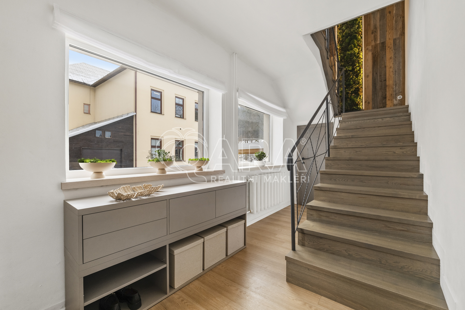 Nadstandardní rodinný dům 5+kk po kompletní rekonstrukci v srdci Beskyd Hledáte prostorné rodinné bydlení, které prošlo kompletní rekonstrukcí a je připraveno k okamžitému nastěhování? Máme pro vás ideální, kompletně zařízený dům v Beskydech, který čeká na to, až se stane vaším novým domovem. Nabízíme k prodeji zrekonstruovaný rodinný dům 5+kk s podlahovou plochou 218 m2, stojící na vlastním pozemku 674 m2 v Horní Bečvě. Dům prošel generální rekonstrukcí v roce 2023 a prodává se kompletně vybavený a zařízený, což vám šetří čas i starosti s dalším zařizováním. Dispozice a rodinný komfort Dispozice domu je ideálně rozdělena na společenskou a klidovou zónu, s dostatkem místa pro každého: V přízemí (1. NP): Prostorná hala vás uvede do obývacího pokoje s kuchyňským koutem, koupelny, prádelny, pokoje pro hosty a praktické úklidové místnosti. V patře (2. NP): Zde se nachází klidová zóna s velkou hlavní ložnicí, dětským pokojem, prostornou kanceláří a druhou, hlavní koupelnou. Teplo a ohřev vody si můžete zajistit buď plynovým kotlem, nebo elektrokotlem. O komfort se starají kvalitní vinylové podlahy po celém domě. Potenciál a praktické benefity Díky chytré dispozici je možné dům s jednoduchou úpravou rozdělit na dva samostatné byty, což zaručuje dostatek soukromí i pro více generací pod jednou střechou. Parkování: K domu náleží přístřešek (dimenzovaný pro zelenou střechu) a celkem nabízí tři pohodlná parkovací místa. Úložný prostor: K dispozici je prostorný sklep (80 m2) a půda, která vybízí k dalším úpravám a rozšíření. Lokalita a Beskydský život Lokalita Horní Bečva nabízí ideální spojení klidného života s kompletní občanskou vybaveností (potraviny, ZŠ, lékárna) v dosahu 5 minut pěší chůze. Okolí je rájem pro aktivní odpočinek, a to jak v létě (turistika, cyklistika), tak i v zimě (lyžařské areály, běžecké trasy). Zavolejte mi a domluvíme se na osobní prohlídce. Budu se těšit.