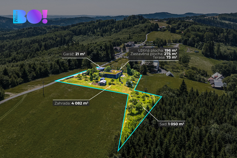 Toužíte po moderním domově uprostřed přírody, s naprostým soukromím a výhledy, které nikdy neomrzí? Právě pro vás je určena tato výjimečná nemovitost nacházející se v katastru obce Rajnochovice - na Trojáku, jednom z nejkrásnějších míst Hostýnských vrchů, nedaleko rozhledny Maruška a lyžařského areálu Troják. Rodinný dům o dispozici 6+kk je situován na rozsáhlém pozemku 6 428 m2 s udržovanou zahradou, samostatnou garáží, dvěma zahradními domky a letní kuchyní. Samotná zastavěná plocha domu činí 275 m2, navíc je k dispozici prostorná terasa o výměře 72 m2 orientovaná na západ. Lokalita a dostupnost: Troják je místem, kde se setkávají tři okresy - Vsetín, Zlín a Kroměříž. Lokalita je známá nejen krásnou přírodou, ale i výbornou dostupností. Autem jste za: - 15 minut v Bystřici pod Hostýnem, - 25 minut ve Vsetíně, - 35 minut ve Zlíně, Všechna tato města nabízejí bohatou kompletní občanskou vybavenost. Nejbližší školka, škola, obchody, lékař a sportoviště se nacházejí v obci Hošťálková, vzdálené 5 km po asfaltové komunikaci. Přes Troják pravidelně jezdí autobusy, které zajišťují spojení ve všech směrech (Bystřice pod Hostýnem, Vsetím, Zlín), bez nutnosti vlastního vozu. Konstrukce a technologie: Tento dům vznikl jako pečlivě promyšlený projekt s důrazem na kvalitu, funkčnost a ekologii: Nosné zdivo: - Pálené bloky typu Porotherm, zateplení minerální vatou 15 cm, - monolitické stropy z betonu B25, základy z prostého betonu B20, - provětrávaná fasáda s dřevěným obkladem z severského modřínu, - zelená (vegetační) střecha, která skvěle izoluje a zapadá do krajiny, - hliníková okna s trojsklem - včetně velkoformátových francouzských oken v obytné části (hlavní portál s výhledem do krajiny má 8m na délku), - teplovodní podlahové vytápění, elektrokotel, - kvalitní kanadská krbová kamna, - příprava pro kotel na tuhá paliva, - vlastní studna, - domácí čistička odpadních vod. Dispozice: Dům nabízí velmi komfortní dispozici 6+kk - se zaměřením na otevřenost a propojení s exteriérem: - obývací pokoj s kuchyňským a jídelním koutem, téměř 70 m2, - 4 ložnice, - pracovna s vlastním vstupem, - 2 koupelny s WC, - 2 technické místnosti, - velká terasa navazující na obytnou část. Každý detail interiéru je navržen s důrazem na světlo, jednoduchost a funkčnost. Dům je zároveň snadno udržovatelný, úsporný a připravený na celoroční užívání - jak pro trvalé bydlení, tak jako luxusní víkendová rekreace. Shrnutí: - výjimečná poloha v přírodě - elektrické žaluzie - centrální vysavač - přístup po asfaltové komunikaci udržované i v zimním období - vlastní studna (hloubka 76m) + čistička = soběstačnost - velký pozemek, garáž, 2 zahradní domky, letní kuchyň, přístřešek pro tři auta - krásné výhledy a naprosté soukromí - vhodné i jako investiční nemovitost (rekreace, pronájem) Podobné nemovitosti se na trhu objevují jen zřídka. Pokud Vás tedy zaujala, zavolejte mi a dohodneme termín prohlídky - tuto nemovitost je třeba vidět a zažít osobně na místě. Těšíme se na vás.