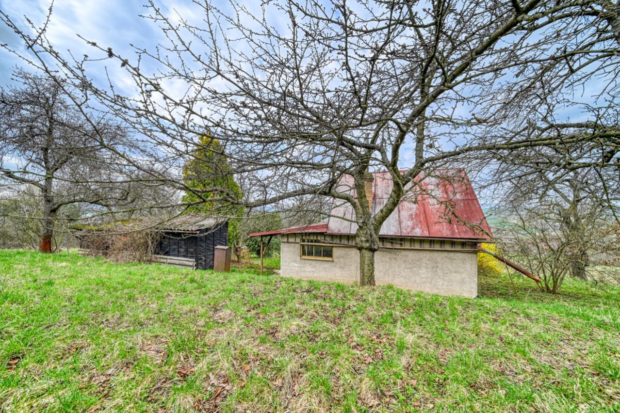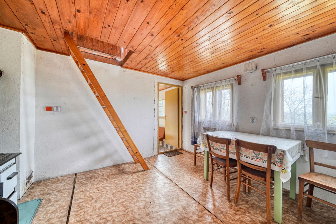 Prodej zděné chaty s velkým pozemkem v městě Koryčany, místní část Čížová. Pozemek celkem 4832m2 v těsné blízkosti lesa s krásnými výhledy do údolí. Zastavěná plocha 32m2, oplocená plocha u chaty 2892m2, zbylá část pozemku je příjezdovou cestou (nezpevněná) z obecního pozemku. K hraně příjezdové cesty vede polní, částečně zpevněná, obecní cesta. Chata připojena na elektřinu 220/380V. Přízemní chata, svislé nosné konstrukce zděné, tl. stěn 30cm, okna zdvojená, dřevěné rámy, podlahy kryty PVC podlahovou krytinou, stropy dřevěné s rovnými podhledy, střecha sedlová s dřevěným krovem a plechovou krytinou, okapy a klempířské prvky z pozinkovaného plechu, vytápění kamny na tuhá paliva, elektroinstalace světelná i zásuvky. WC suché mimo chatu. Chata byla postavena cca v r. 1976, prováděna běžná údržba. Vnitřní dispozice : 1.PP (suterén): 1 menší sklepní místnost, podsklepeno pouze částečně; 1.NP (přízemí): vstupní místnost s kuchyňskou linkou, vaření možno na propanbutanovém vařiči, a dále obytná místnost s kamny na tuhá paliva; 2.NP (podkroví) : přístupné přes strmé dřevěné schodiště, nezatepleno, půdní prostory, dvě menší okna ve štítech, prkenná pochozí podlaha na stropních trámech. Rozvody vody ani kanalizace nejsou vybudovány. Na pozemku ovocné stromy a trvalé travní porosty. Pozemek okolo chaty oplocen, vybavený vjezdovou ocelovou bránou. Elektroměr umístěný ve zděné elektroměrné skříni na hranici pozemku. Volné ihned.