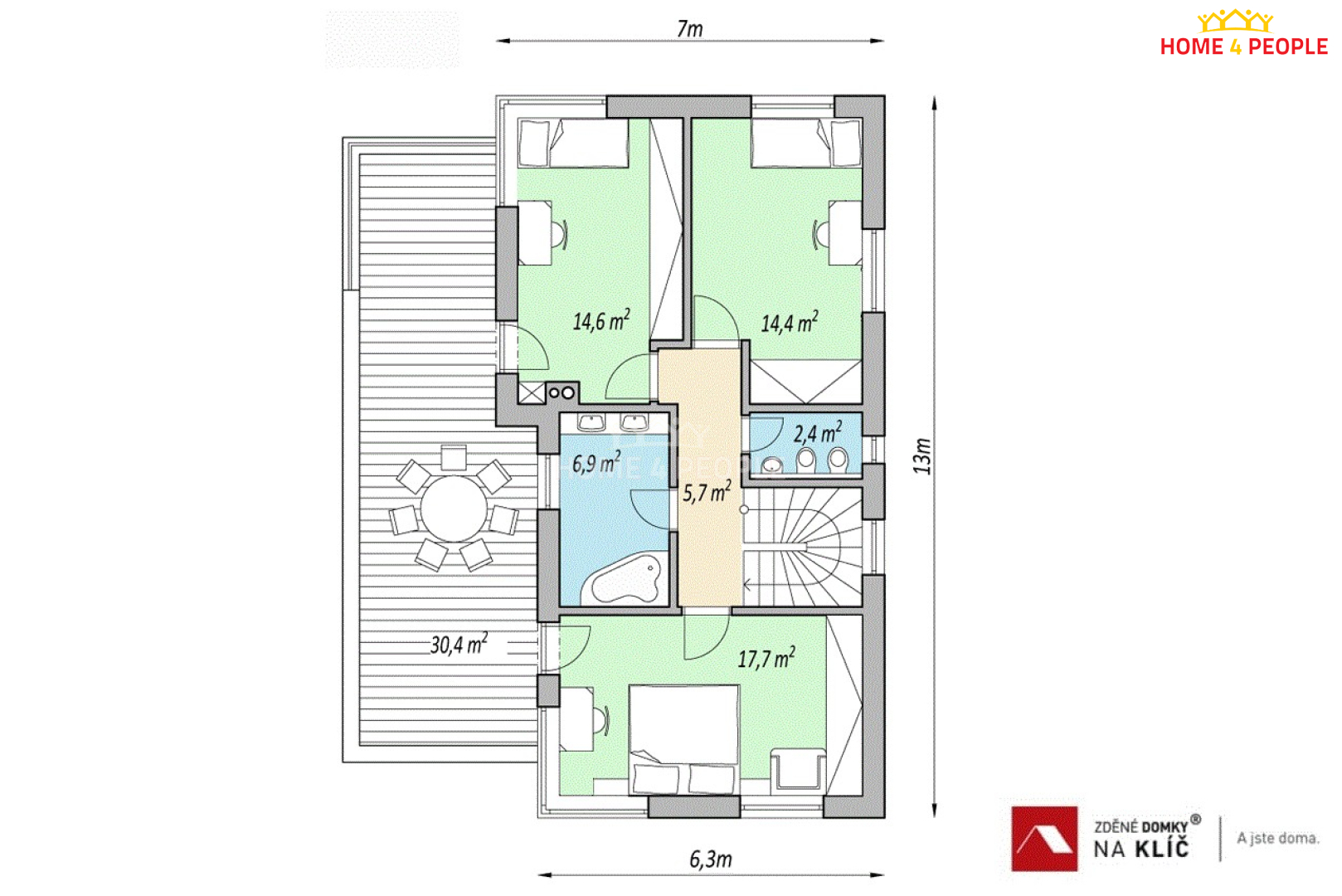 Váš nový domov ve Zlíně. Kde se historie potkává s moderním životem! Představte si domov, který v sobě nese duši Zlína, ale zároveň nabízí komfort a efektivitu 21. století. Přesně takový je náš nový patrový dům 5+kk na klíč, inspirovaný nadčasovou elegancí. Je to perfektní útočiště pro Vaši až pětičlennou rodinu, kde se budete cítit hrdě a spokojeně. Zapomeňte na starosti s výstavbou! Stavební povolení je již v ruce a my startujeme do 30 dnů, abychom Vám předali klíče od Vašeho vysněného domova za pouhých 12-14 měsíců. Komfort na klíč. Od A do Z. Užijte si bydlení bez kompromisů, kde je myšleno na každý detail. V ceně se základní fasádou, projekt, základová deska, veškeré přípojky, až po kolaudaci a finální úpravy. Prostorný a efektivní dům s užitnou plochou 149 m2 pro Vaši rodinu s nízkými provozními náklady. Vlastní pozemek 400 m2 v soukromí a pohodlné parkovací stání 36 m2. Moderní Technologie pro Váš Klid. V interiéru na Vás čeká to nejlepší z moderních technologií. Ekologické a úsporné vytápění: Teplovodní podlahové topení v celém domě, poháněné tepelným čerpadlem se 180 L zásobníkem na teplou vodu. Pocit tepla a komfortu po celý rok. Vysoký standard vybavení: Kvalitní elektroinstalace, kompletní sanitární vybavení s moderními bateriemi, a elegantní interiérové dveře s obložkami. Přizpůsobte si své sny. Flexibilita dispozice: Možnost posunu příček a individuálních úprav již ve fázi projektu. Vytápění na míru. Dle dohody změníme systém vytápění nebo vystavíme komín pro krbová kamna/vložku pro útulné večery. Pro maximální pohodlí a luxus si můžete dům rozšířit o kryté garážové stání propojené s domem a stylovou terasu - krytou či nekrytou za příplatek. Nadstandardní výbavu: Chytrou domácnost, klimatizaci, rekuperaci, externí žaluzie/rolety nebo fotovoltaiku pro ještě větší úspory a komfort. Tento dům není jen stavba, je to životní styl. Spojení tradiční zlínské estetiky s moderními technologiemi a nízkými náklady. Nenechte si ujít tento jedinečný domov! Podívejte se sami! Srdečně Vás zveme na prohlídku pozemků a našich již realizovaných staveb, kde se na vlastní oči přesvědčíte o kvalitě a smyslu pro detail. Kontaktujte našeho makléře ještě dnes a udělejte první krok k Vašemu novému domovu ve Zlíně! Ev. číslo: 32040. Energetický štítek: A (49 kWh/m2/rok).