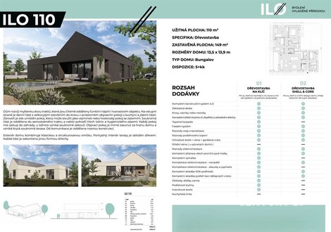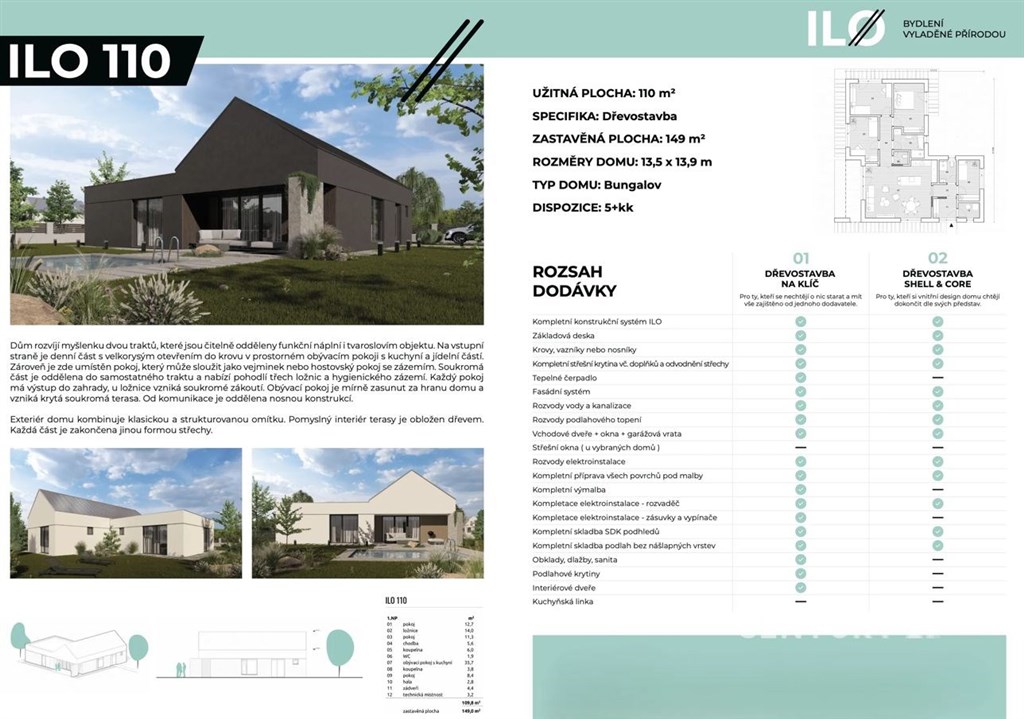 Ve spolupráci s majitelem pozemku nabízíme kompletní výstavbu moderní dřevostavby RD o dispozici 5+kk v klidné okrajové části obce Hlinsko pod Hostýnem. Dům o užitné ploše 110 m2 bude postaven na pozemku o rozloze cca 1200 m2, který přináší dostatek soukromí a prostoru pro relaxaci plus pozemek cca 400 m2 pro zahrádkáření. Životní prostor domu je optimálně rozvržen pro komfortní rodinný život, kde každý člen rodiny nalezne své místo. Nabídková cena zahrnuje: pozemkovou parcelu pro RD o výměře cca 1200 m2 a sousední zahradu cca 400 m2 vhodnou pro sad, kompletní výstavbu RD napojenou na IS se základní terénní úpravou, kompletní vnitřní vybavení sanitárními předměty, podlahové krytiny, dveře, obklady a dlažby, tepelné čerpadlo s podlahovým rozvodem vytápění, projekt a vyřízení stavebního povolení. Kuchyňská linka není součástí dodávky Stavba kombinuje moderní technologické prvky s ekologickým přístupem a respektuje moderní trend minimalismu, nicméně nepřehlíží ani funkčnost každodenního života. Jak je zvykem u novostaveb, dům disponuje pouze nejnutnějšími technickými prvky bez zbytečného přetváření. Využijte nabídku výstavby moderního energeticky úsporného bydlení v klidné oblasti s výhledem na Hostýnské vrchy.