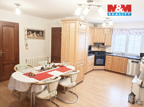 Nabízíme k prodeji prostorný rodinný dům v klidné části obce Zašová s výbornou dostupností občanské vybavenosti. Škola, školka, obchody i centrum obce jsou v docházkové vzdálenosti. Dům je přízemní s částečně obytným podkrovím a částečně podsklepený. Dominantou domu je velkorysá denní místnost s vnitřním bazénem, která zajišťuje nadstandardní komfort bydlení. Dispozice nabízí vstupní zádveří, technickou místnost, garáž, halu s kuchyňským koutem, obývací pokoj, dva samostatné pokoje, koupelnu a samostatné WC. V podkroví se nachází otevřený obytný prostor a druhá koupelna. Vytápění plynovým kotlem nebo krbem napojeným na ÚT s akumulační nádrží 1 000 l, ovládání i přes mobilní telefon. Dům je napojen na plyn, vodovod a kanalizaci, k dispozici je také vrtaná studna. Pozemek 1 068 m2, užitná plocha 228 m2.