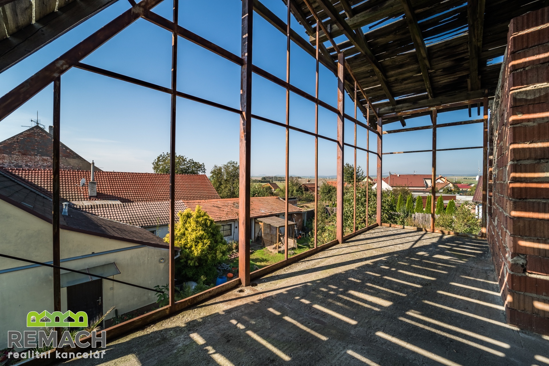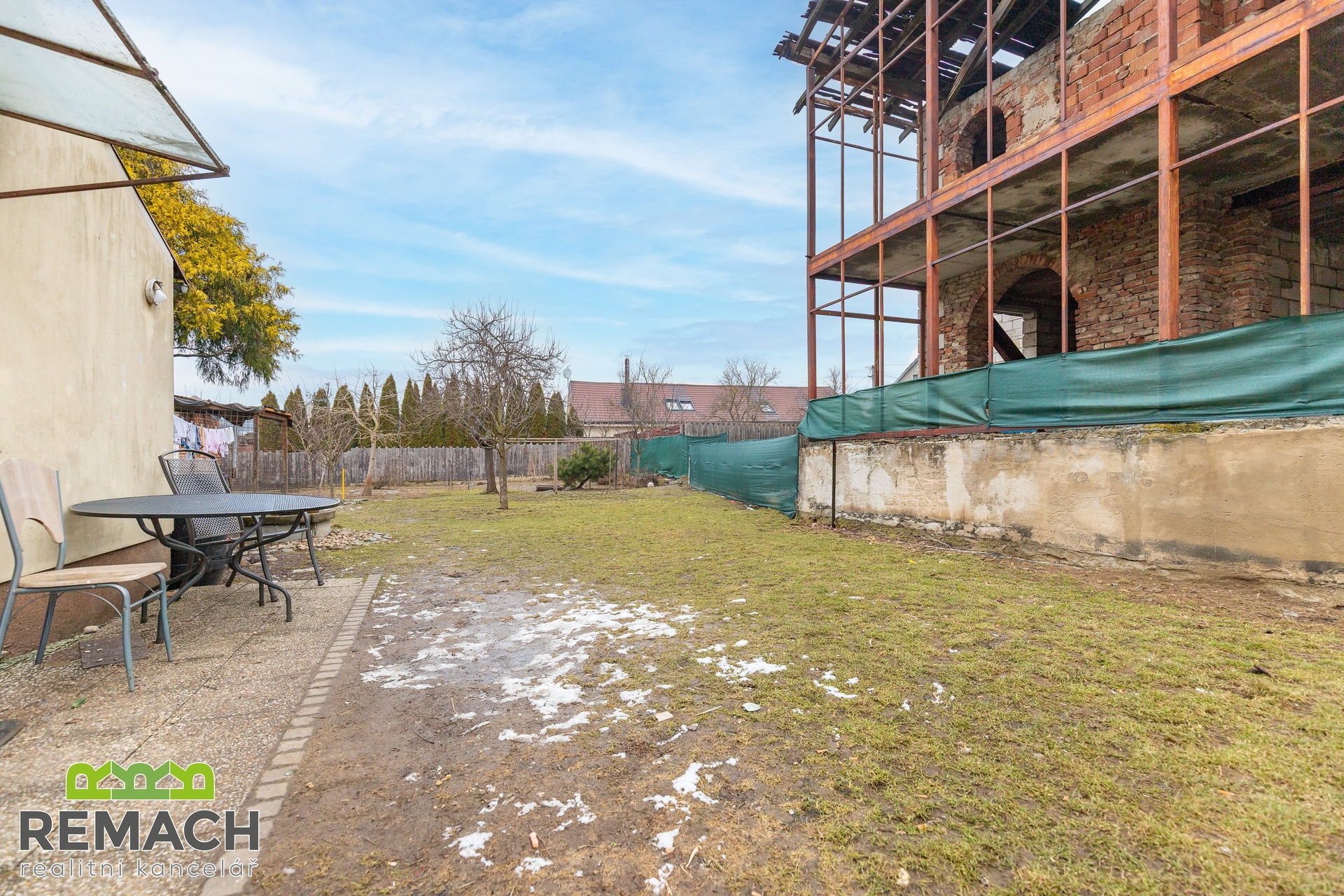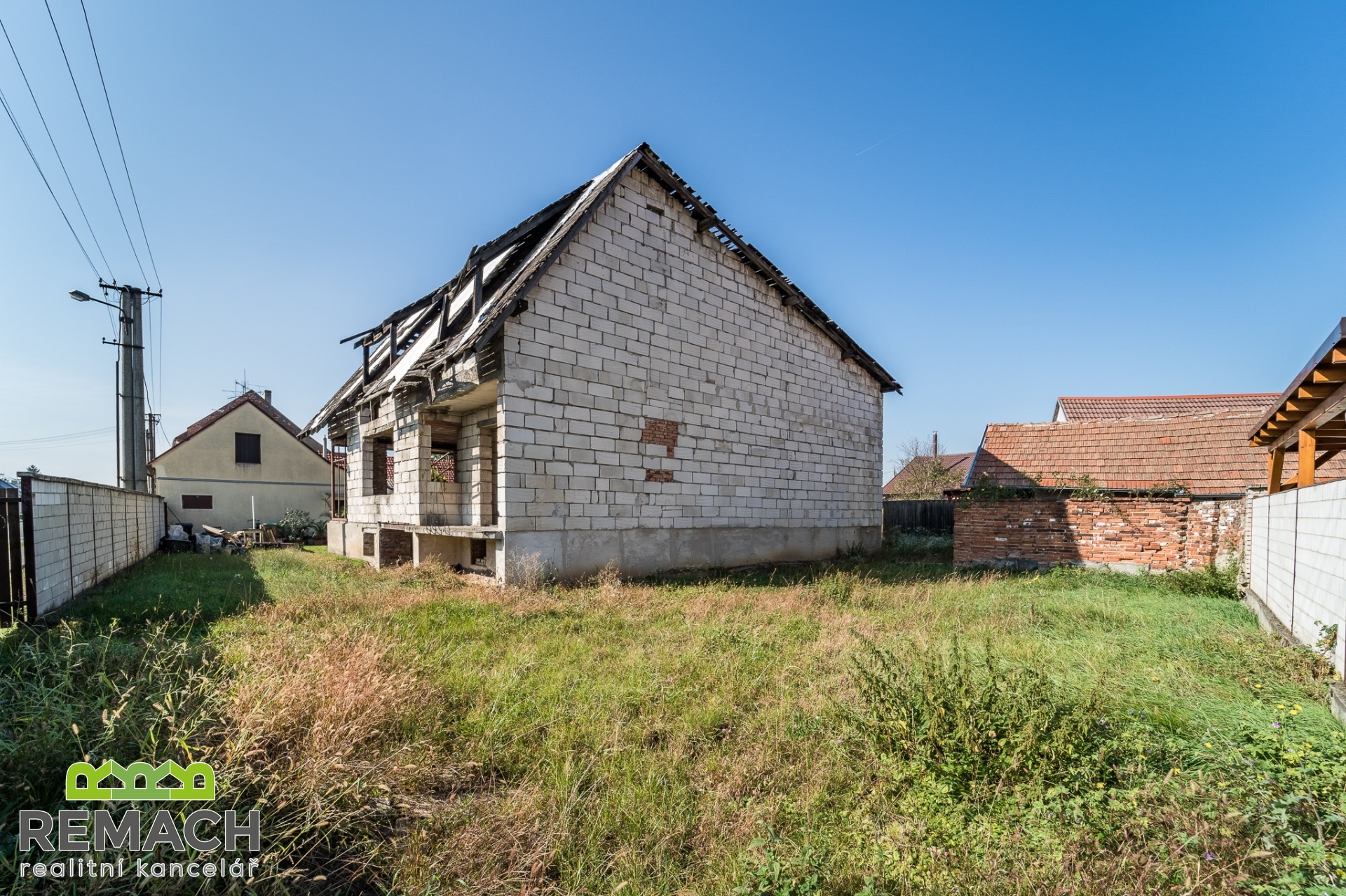 Dva domy, zastavěná plocha každého z nich je 191 m2 a 101 m2. Celková rozloha pozemku je 1235 m2. Z pravé strany od rozestavěného domu bylo počítáno s velkou garáží, přičemž mezi domy se nachází další prostor pro stavbu třetího rodinného domu. Za domy a mezi nimi je prostorná zahrada. - Pro investora je velkou výhodou, že byla zpracována studie celého projektu, který počítal se třemi samostatně stojícími domy: Dispozice: v každém RD 3 byty (1 byt / podlaží), celkem 9 bytů Zastavěná plocha (celkem): 310 m2 (≈ 103 m2 / dům) Podlažnosti: 3 nadzemní podlaží (1NP, 2NP, podkroví) Studie obsahuje nejen souhrn nákladů podle profesí a materiálu, ale i fáze financování projektu a návrh podmínek úvěru. - A pokud chcete nemovitost pro vlastní bydlení, tak pravý rozestavěný cihlový dům byl navržen s dispozicí 6+1 s plochou pozemku 637 m2, z toho zastavěnou plochou 191 m2. V přízemí je naprojektován prostorný obývací pokoj napojený na kuchyni s jídelním koutem, zimní zahradou, pracovním koutem a pokojem, případně pracovnou, dále koupelnou s toaletou, vedle domu garáž pro dvě auta. V prvním patře jsou tři samostatné ložnice a koupelna, dále druhá zimní zahrada. Celý dům je podsklepen a nabízí i prostorný klenutý sklep, umístěný pod suterénem domu. Z domu je krásný výhled do okolí, také na hrad Buchlov a Barborku. Výhodou je, že dispozici domu si může budoucí majitel ještě upravit podle vlastní představy, případně rozdělit na dvě samostatné bytové jednotky. - Levý přízemní dům je ihned obyvatelný. Dispozičně řešen jako 2+1 s velkou vstupní chodbou. Za domem se nacházejí hospodářské budovy a již zmíněná prostorná zahrada s ovocnými stromy.