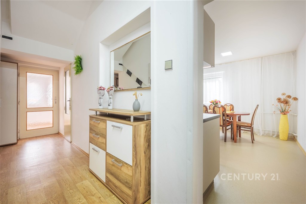 Ve výhradním zastoupení majitele nabízím prostorný rodinný dům o dispozici 6+1 se zahradou v obci Sehradice. Zastavěná plocha domu činí 115 m2, užitná plocha 229 m2 a celková plocha pozemku 646 m2. Dům nabízí dostatek prostoru pro rodinné bydlení a díky dvěma samostatným vstupům také možnost vytvoření dvou bytových jednotek. Dispozice domu Podzemní podlaží: garáž 30 m2, sklad 15 m2. 1. nadzemní podlaží: chodba 12 m2, WC 1 m2, kuchyně 17 m2, koupelna 4,5 m2, spíž 2 m2, obývací pokoj 30 m2, pokoj 27 m2, dílna 34 m2, chodba 8 m2. Mezipatro: terasa 8 m2 s výhledem do zahrady a okolní krajiny. 2. nadzemní podlaží: chodba 3 m2, koupelna 13 m2, šatna 2 m2, pokoj 21 m2, pokoj 20 m2, pokoj 34 m2, pokoj 8 m2. Technické informace Dům prošel moderní rekonstrukcí. Vytápění je řešeno kombinací plynového kotle (2025), kotle na tuhá paliva a krbu v obývacím pokoji. Elektřina je třífázová, okna plastová, podlahy dlažba, vinyl a PVC. Součástí domu je také bezbariérový přístup se schodišťovou plošinou. Energetický štítek zatím nebyl doložen, proto je uvedena třída G. Tento dům má velký potenciál jako rodinné bydlení, dvougenerační bydlení s možností využití prostor podnikatelského záměru, jako investiční nemovitost ke zřízení penzionu. Lokalita V přímé blízkosti domu se nachází mateřská a základní škola, restaurace, kulturní dům, autobusová zastávka i park pro rodiny s dětmi. Sehradice leží přibližně 7 km od Luhačovic, 16 km od Zlína a 14 km od Uherského Brodu. Velkým benefitem také je , že se v obci nachází moderní sportovní areál s fotbalovým a multifunkčním hřištěm pro tenis i další sporty, kde se během roku konají sportovní, kulturní i rodinné akce a koncerty. Součástí obce je také moderní koupaliště se zázemím pro letní relaxaci. Kupujícím zajistím kompletní servis včetně financování ve spolupráci s jedním z nejlepších hypotečních specialistů v České republice. Konzultace k hypotéce je zdarma. Ráda vás tímto domem osobně provedu a představím vám všechny jeho přednosti.