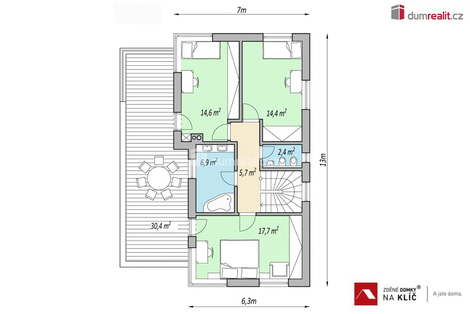 Dumrealit.cz Vám zprostředkuje exkluzivní prodej patrového rodinného domu typu Lotus o velikosti 5+kk o podlahové výměře 149 m2 v Uherském Brodě části Těšov. Rodinný dům Lotus je typ rodinného domu vhodný do rovinatého, ale i mírně svažitého terénu. Součásti uvedené ceny, která již zahrnuje DPH je dům na klíč, inženýrské sítě v dosahu a připojené místo EDG (EON), mimo plynu, pozemek a veškeré projektové práce i stavebního povolení. Pozemek (E) o výměře 1331 m2 je na klidném místě obce. Šíře pozemku je 21,5 m. Navíc k nabízenému pozemku je i podíl na dalším pozemku za zahradou. Dle územního plánu je pozemek veden a schválen pro rodinné bydlení. Jedná se o zděnou stavbu a nabízí se ve variantě na klíč. Uvedená cena domu obsahuje základovou desku, DPH a stavba bude provedena na klíč a předána po kolaudaci k okamžitému užívání. V projektu jsou možné variabilní úpravy dispozice (posuny příček či oken). Dům je ideální pro 5 člennou rodinu s nízkými provozními náklady. Uvedená cena je za pozemek, kompletní stavbu domu v provedení na klíč, projektové dokumentace, vyřízení stavebního povolení, základové desky až po kolaudaci. V uvedené ceně můžete počítat také s finálními povrchovými úpravami exteriéru i interiéru, a to včetně elektroinstalací, sanitárního vybavení s bateriemi, interiérovými dveřmi včetně obložek a vytápění bude řešeno teplovodním podlahovým topením v kombinaci tepelného čerpadla se 180L zásobníkem na teplou vodu. Dle dohody změníme systém vytápění nebo vystavíme komín pro krbové kamna nebo pro využití krbové vložky. Kryté garážové stání spojené s domem nebo venkovní krytou či nekrytou terasu za příplatek. Pro náročnější klienty máme nabídku nadstandardního vybavení chytré domácnosti, klimatizaci, externí žaluzie, rolety, rekuperaci nebo fotovoltaiku. Doba výstavby cca 12-14 měsíců od vydání stavebního povolení a stavbu zahájíme do 10 dnů od jeho vydání. Smlouvy o dílo zašleme na vyžádání včetně položkového rozpočtu. Parametry domu: užitná plocha 149 m2 zastavěná plocha domu 111 m2. V domě se nachází hlavní obytný prostor s kuchyňským koutem, sklad, technickou místnost a WC s umyvadlem, zařízená koupelna, 4 pokoje. V blízkosti je veškerá občanská vybavenost. (Součástí ceny není kuchyňská linka a světla - dokážeme za zvýhodněných podmínek zajistit přes naše dodavatele). Financování zajišťujeme a můžete využití našich služeb, při prodeji Vaší nemovitosti. Doporučuji prohlídku pozemku. Možnost změnit na jiný dům dle požadavků a nebo jiné dva pozemky vedle sebe. Více informací u makléře. Ev. číslo: 655135. Energetický štítek: A (49 kWh/m2/rok).