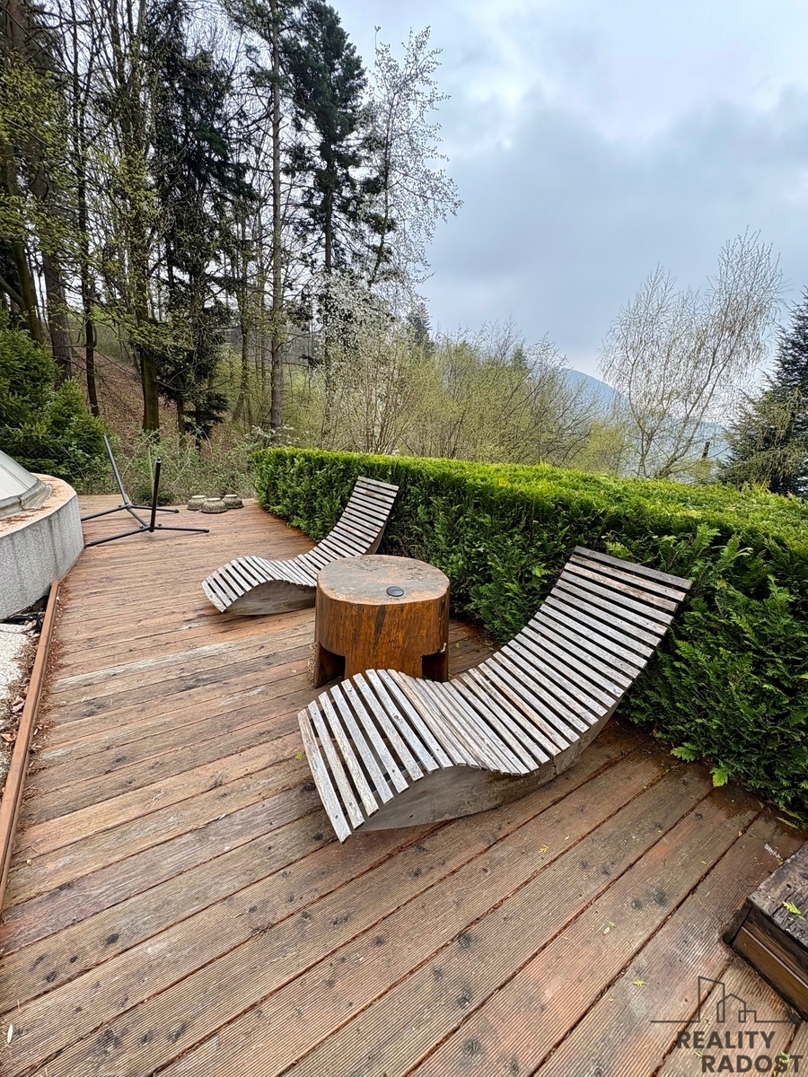 V zastoupení majitele nabízíme ke koupi rekreační nemovitost situovanou v obci Chvalčov, v okrese Kroměříž. Jedná se o poslední chatu na okraji obce, nad stávající chatovou oblastí, což zajišťuje klid, soukromí a příjemný výhled do okolní přírody. Objekt je dřevěné konstrukce, stojí na betonovém základu a je evidován pod dvěma čísly. Celková výměra mírně svažitého pozemku činí 973 m2. Užitná plocha samotné chaty dosahuje 95 m2. Dispozičně je nemovitost rozdělena do dvou nadzemních podlaží. V přízemí se nachází obývací část s kuchyňským koutem, pokoj, technické zázemí s koupelnou a toaletou a také vstup do menšího sklepa. Horní patro tvoří dvě prostorné, oddělené ložnice. O vytápění se starají krbová kamna, zatímco ohřev vody zajišťuje elektrický kotel. Objekt je napojen na elektrickou síť a voda je přivedena z přírodního dostatečně silného pramene. Okna jsou dřevěná, doplněná okenicemi. Součástí pozemku je i zázemí pro odpočinek a volný čas - pergola s posezením a grilem, kůlna, skleník, kryté parkovací stání a krytý bazén s navazující dřevěnou terasou. Vybavení zůstává součástí prodeje. Příjezd k nemovitosti je možný až k objektu, a to na základě zajištěného věcného břemene přes sousední pozemky. Lokalita je známá svou rekreační atraktivitou během celého roku. V blízkém okolí najdete hlavně lesy, turistické trasy, cyklotrasy, lyžařská střediska Tesák a Troják, vyhřívané koupaliště Rusava i oblíbená výletní místa, jako je sv.Hostýn, rozhledna Maruška na Trojáku nebo vrchol Kelčský Javorník. Nemovitost představuje ideální zázemí pro relaxaci v přírodě, mimo ruch města. Do centra města Bystřice pod Hostýnem je to pouze 4 km. V případě zájmu doporučujeme osobní prohlídku.